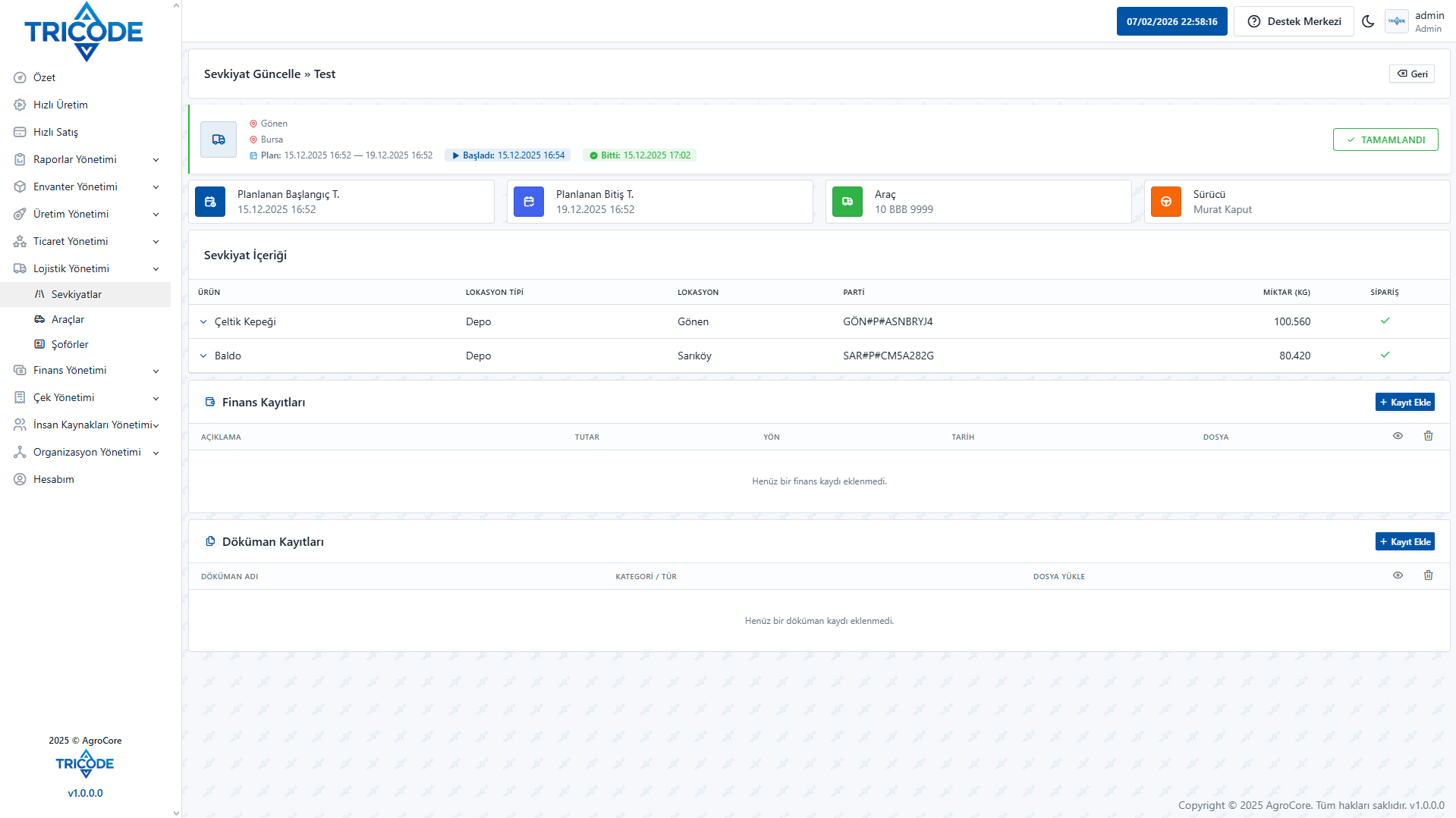 Tricode tarafından geliştirilen Agrocore, tarımsal işletmelerin karmaşık süreçlerini tek bir merkezde toplar. Ekim planlamasından gübreleme takibine, maliyet analizinden depo yönetimine kadar tüm operasyonlarınızı veriye dayalı yönetmenizi sağlar.